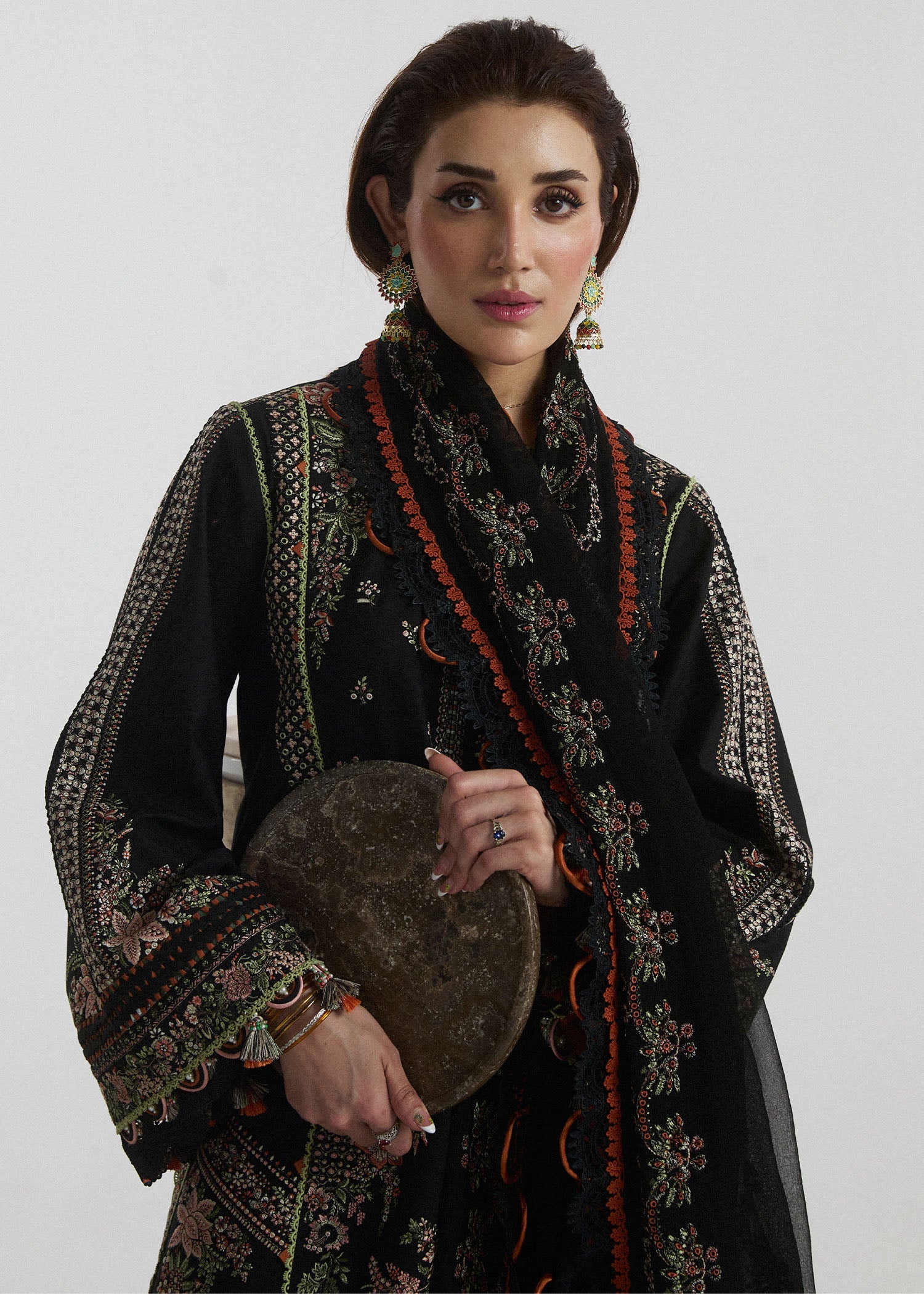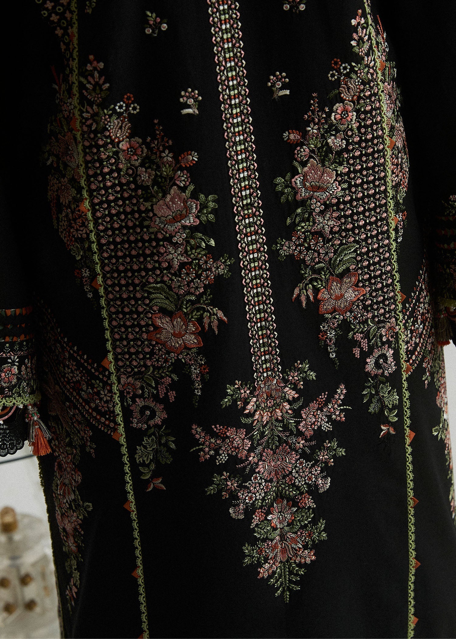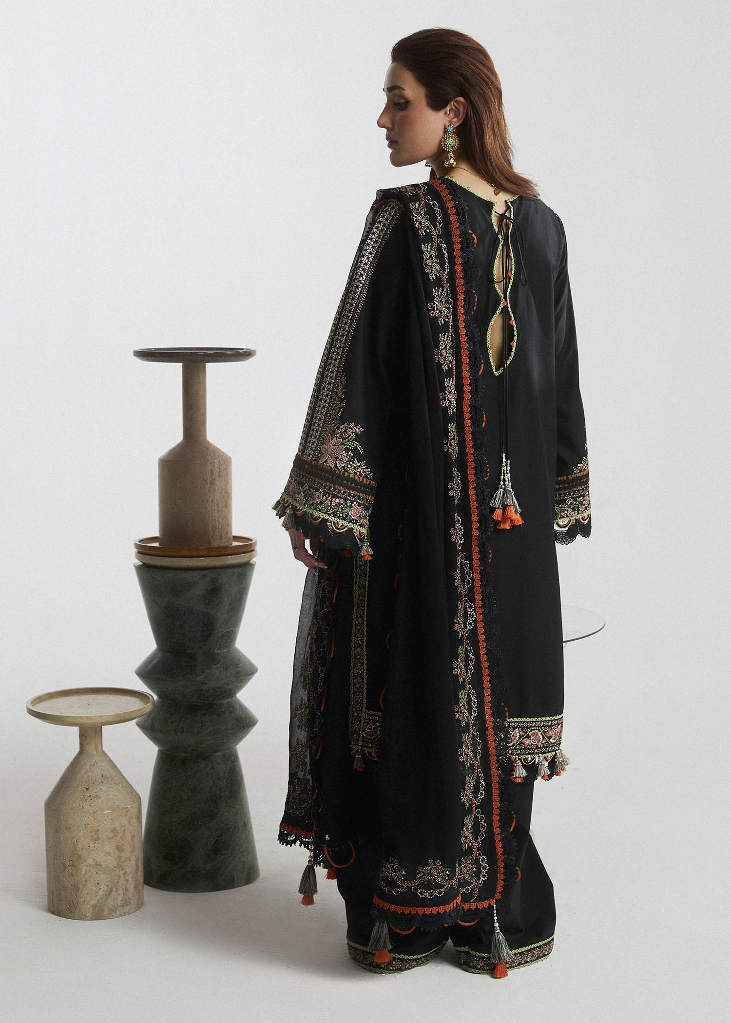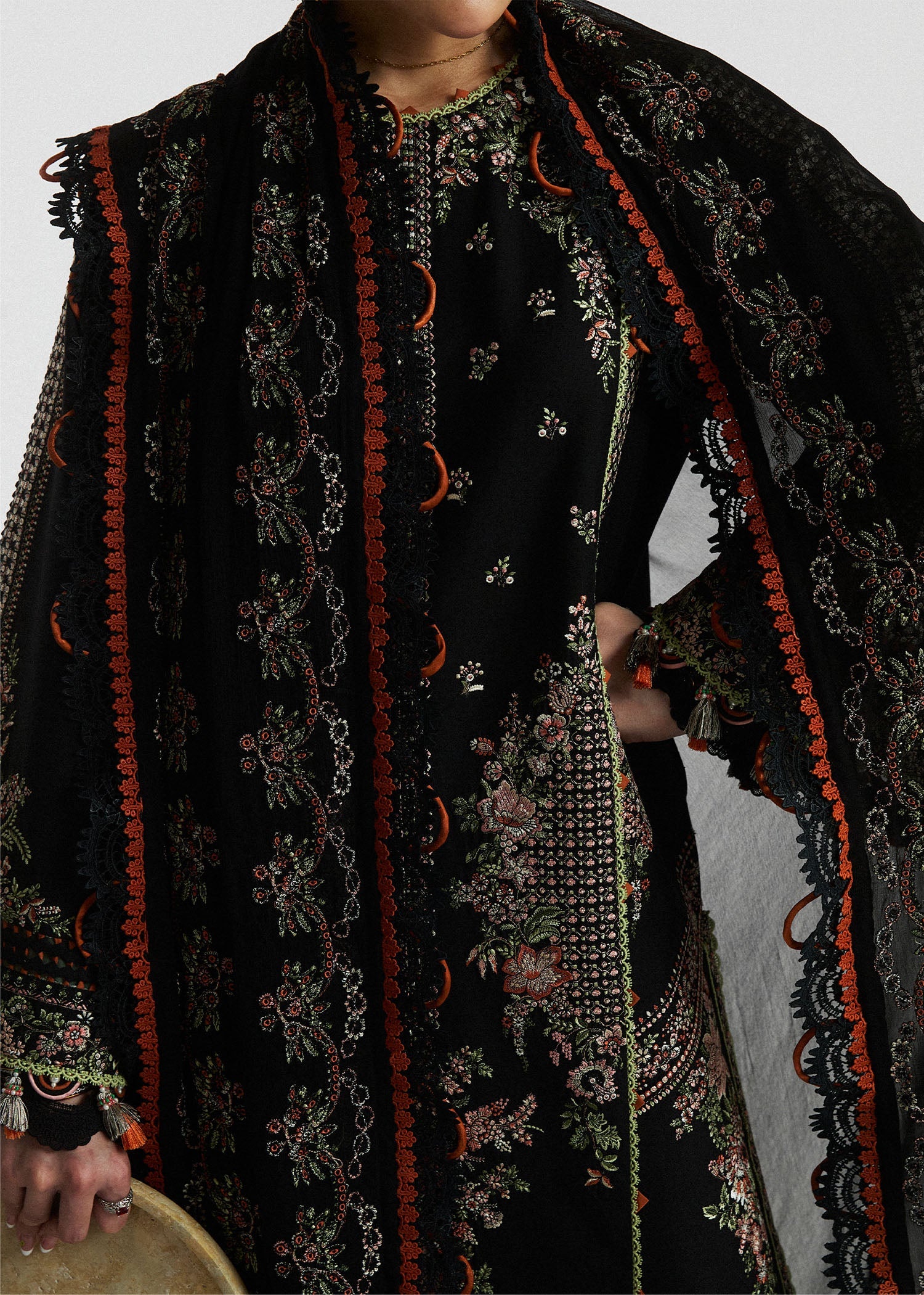 Embrace the elegance of summer season with this Black ensemble, adorned with intricate floral embroidery. Black shalwar with Embroidered Border, and Same Chiffon Embroidered dupatta, it's a timeless ode to floral beauty.