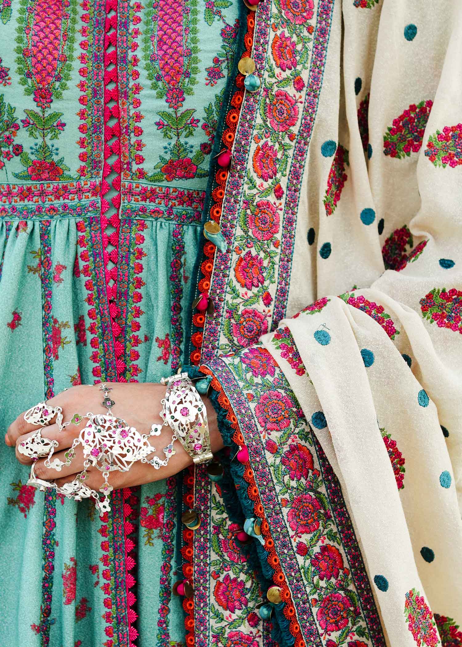 - Embroidered Dupatta Pallu Border (Ivory Base Karandi) 2.23 Meters