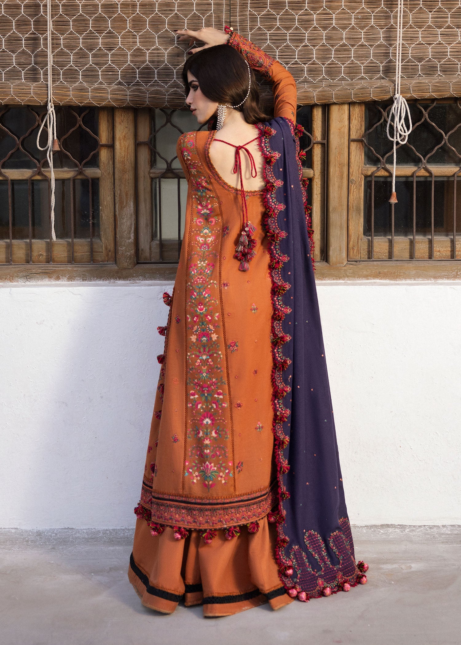Step into timeless elegance with this beautifully crafted ensemble,where every inch speaks of artistry and grace.The intricate embroidery on the shirt's panels and borders brings depth and texture,while the rich karandi fabric ensures a luxurious feel. Paired with a delicately embroidered dupatta and perfectly matched dyed trousers,this outfit exudes sophistication from head to toe. Ideal for any occasion,it's a masterpiece that captures the essence of traditional charm with a touch of modern finesse.