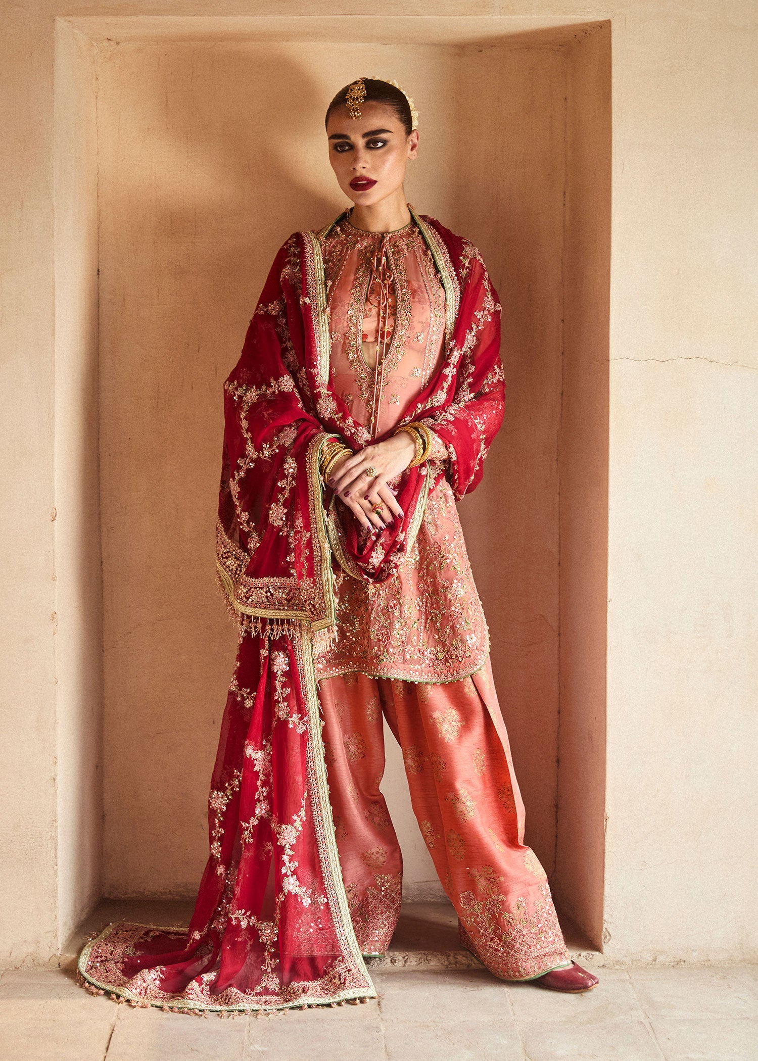 The chiffon embroidered shirt is made of lightweight and sheer fabric, embellished with intricate adda work. The screen printed and embroidered shalwar adds a graceful and traditional touch to the ensemble.The chiffon dupatta with unique embroidered jaal and four side borders to complete this look.Overall, this outfit is a perfect blend of style, grace, and traditional charm.